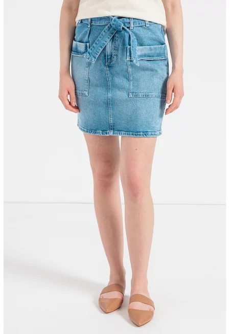 Къса дънкова пола с пришити джобове