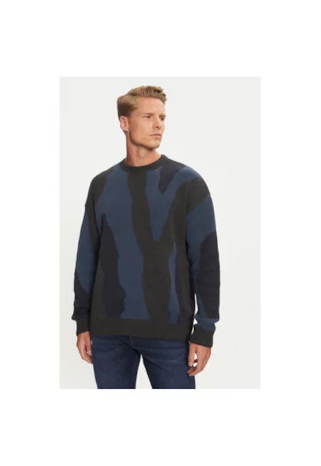 Мъжки пуловер - 304464546 - Полиестер/Памук - Син