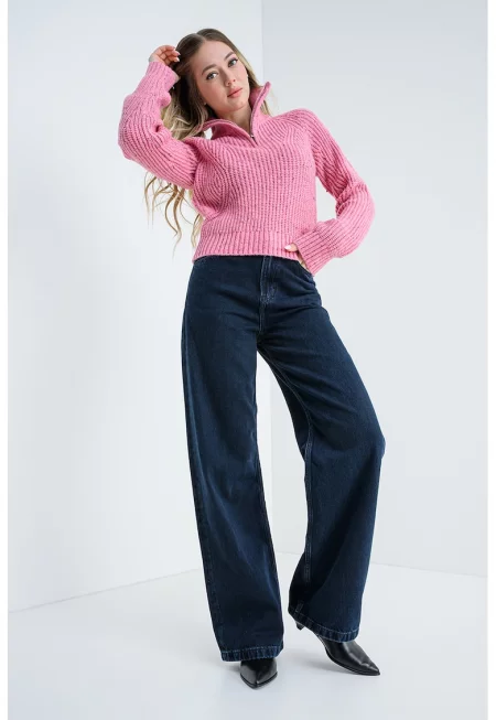 Пуловер с вълна с къс цип