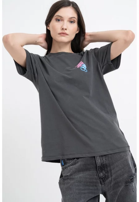Тениска с памук с бродирано лого