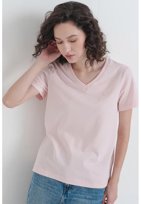 Тениска с овално деколте и лого на гърдите - 2 броя