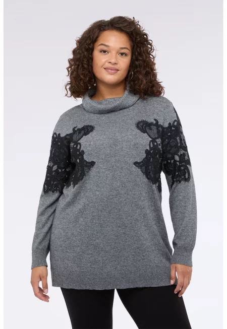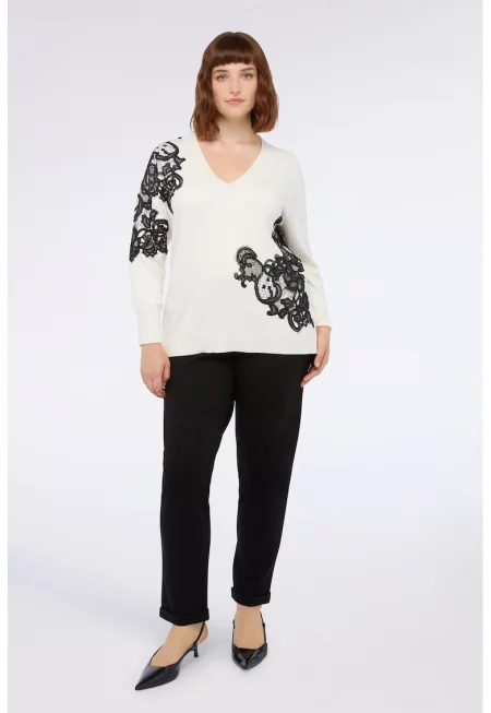 Пуловер с вълна с дантела
