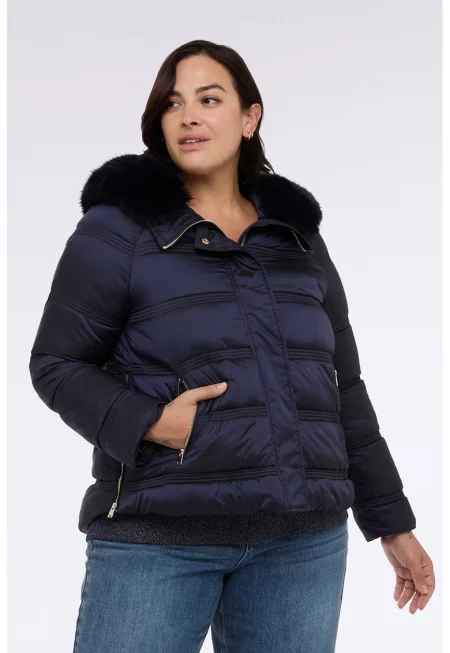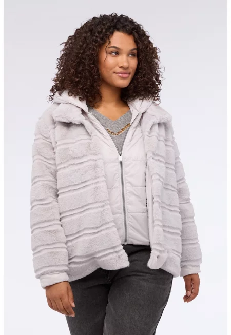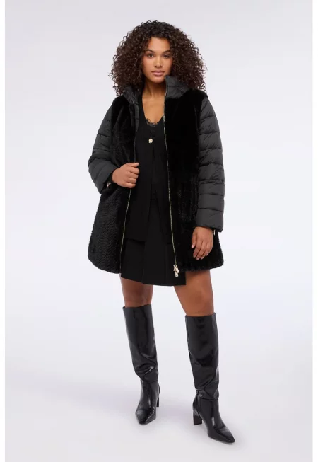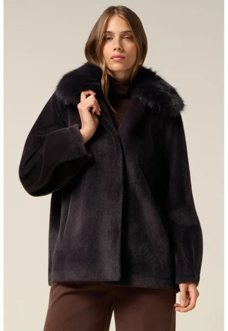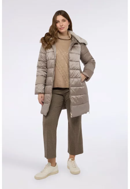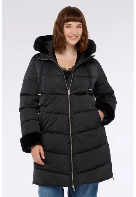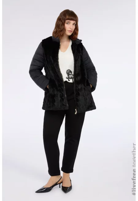 Палто с детайли от еко пух