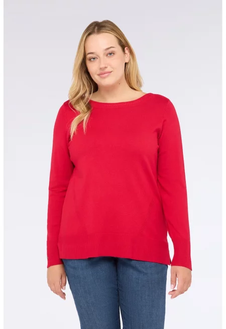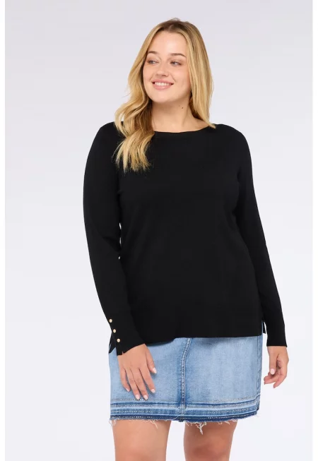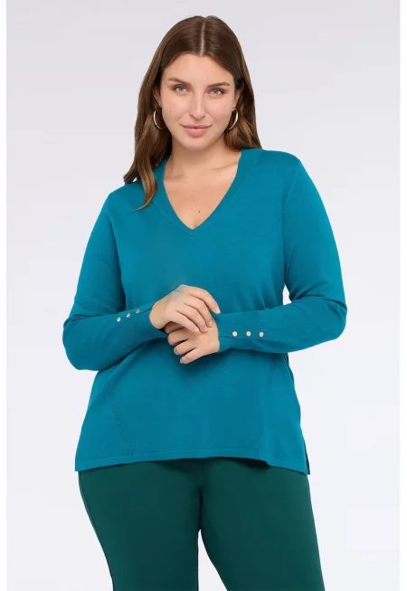 Шпиц пуловер с цепка встрани на подгъва
