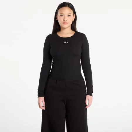 Тениска GAP Ribbed Logo T-Shirt Black XS