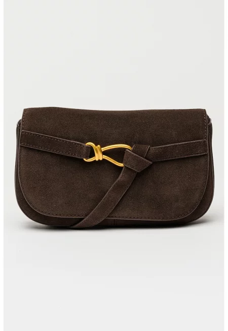 Велурена чанта през рамо Klarity с декоративна презрамка