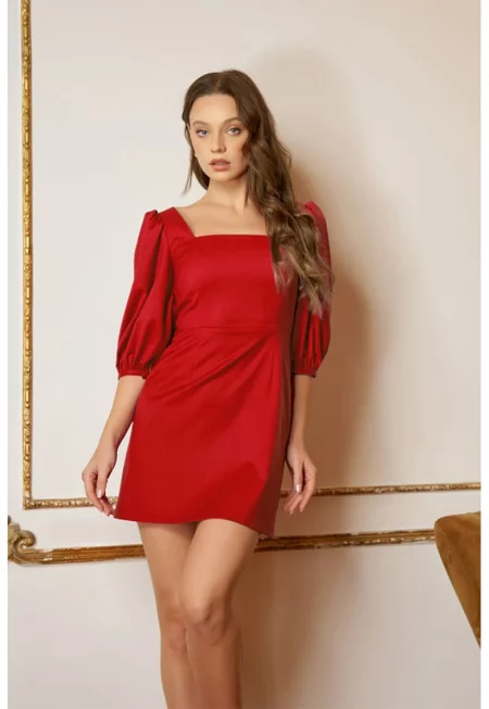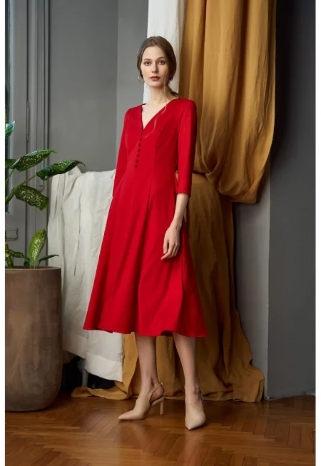 Рокля Amaryllis с лен и шпиц - Аленочервен