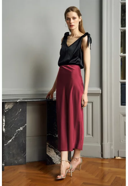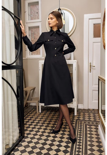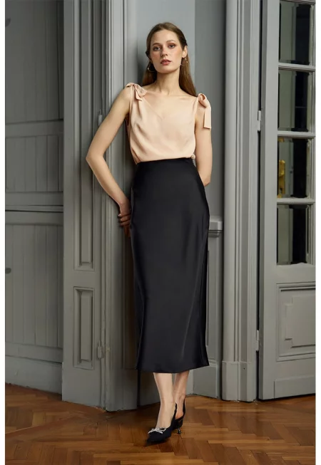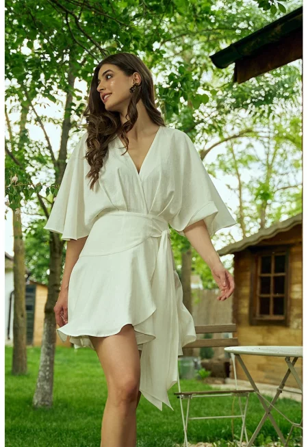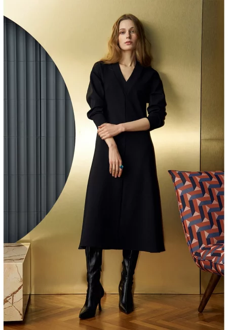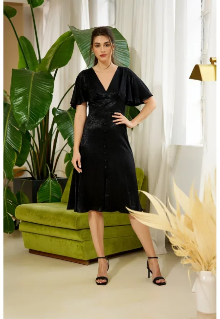 Сатинирана рокля с ръкави тип пеперуда - Черен