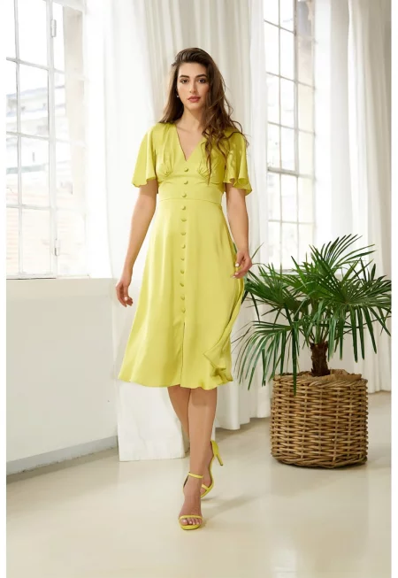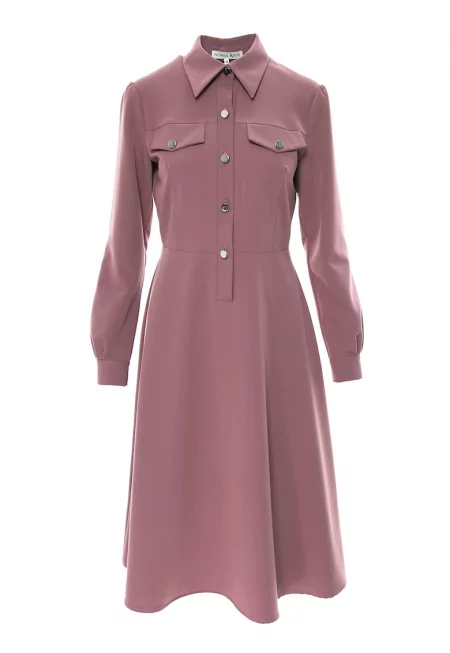 Миди рокля с къси ръкави и копчета - Светлорозов