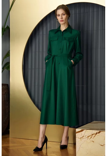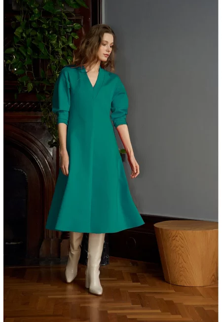 Миди рокля Scarlet с шпиц - Персийско зелено