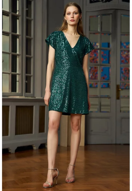 Къса рокля с бляскави детайли - Черен/Сребрист