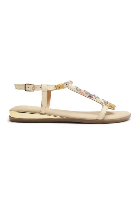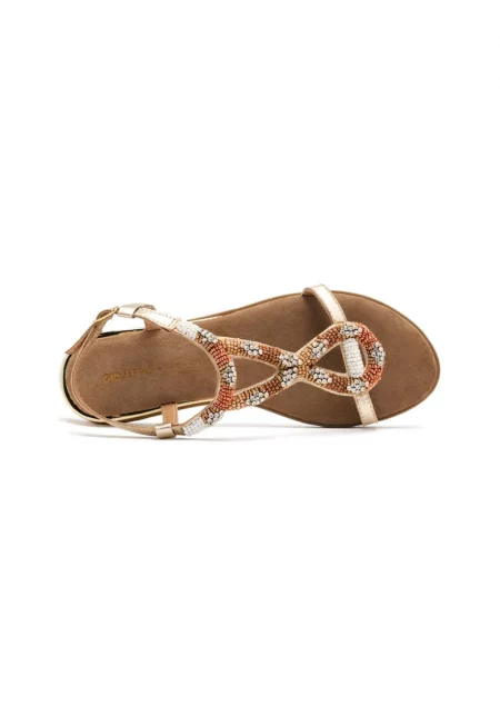 Кожени сандали с мъниста и декоративни камъни