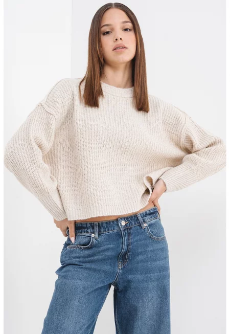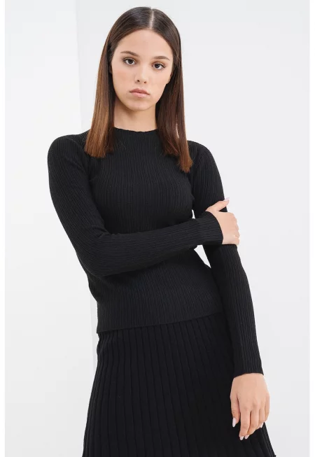 Фино плетен пуловер с рипс
