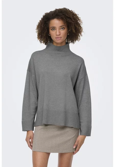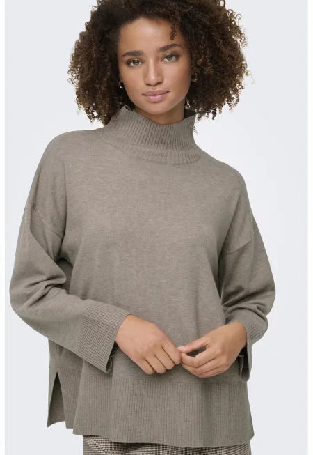 Пуловер с висока яка и странична цепка на подгъва