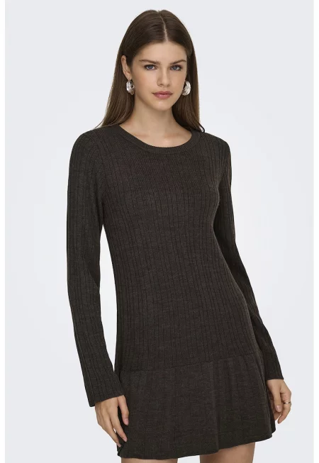 Рипсена рокля с дълги ръкави и цепка встрани