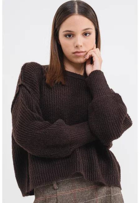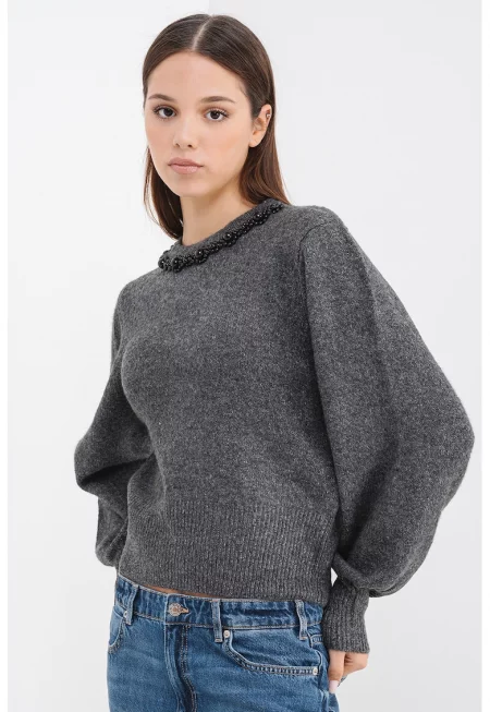 Шпиц пуловер с бухнали ръкави