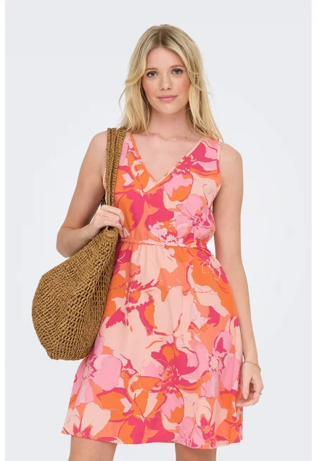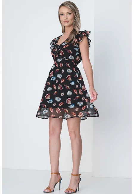 Къса флорална рокля с набирания