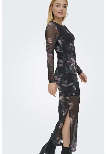 Вталена миди рокля с ефирни панели