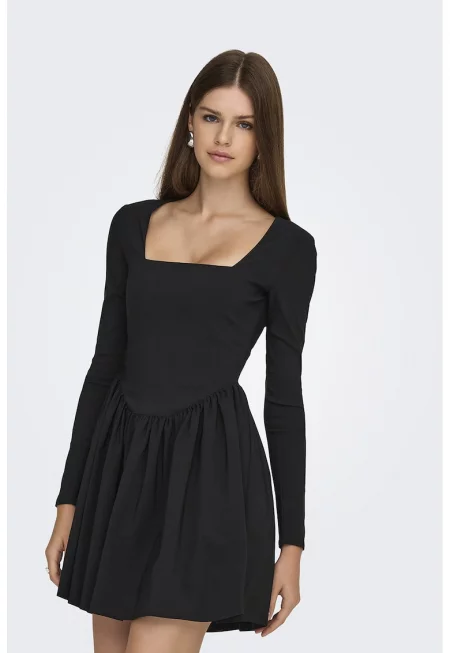 Къса рокля с квадратно деколте и плисиран подгъв