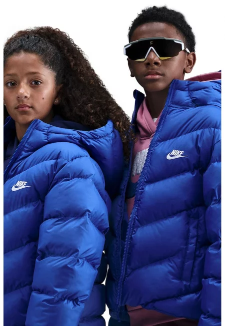 Свободно подплатено зимно яке с лого - Кралско Синьо
