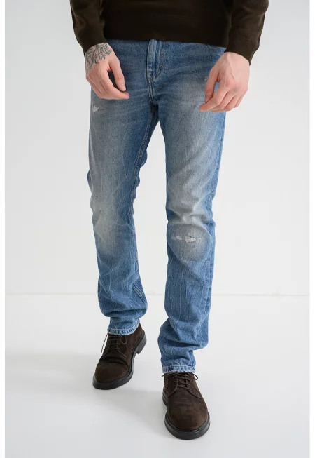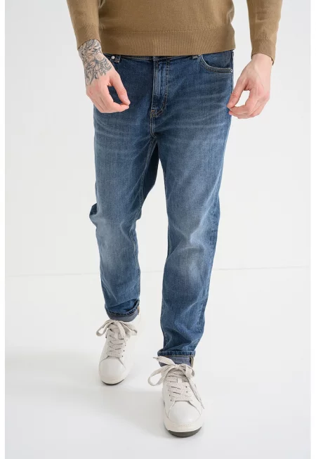 Дънки с миди талия и захабен ефект