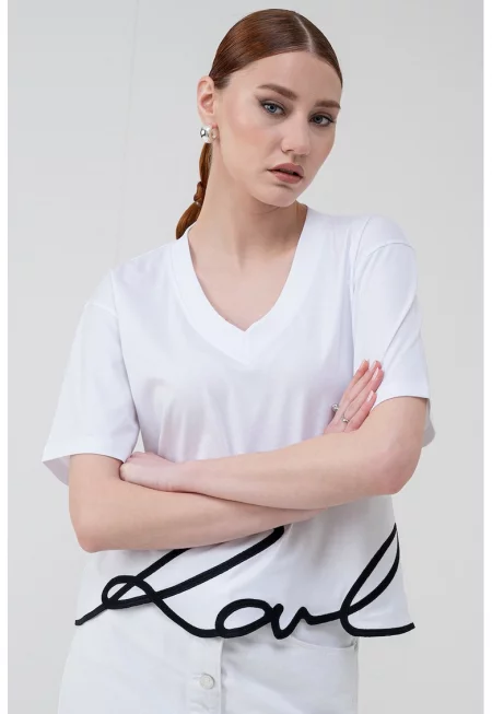 Дамска тениска - 304579486 - Органичен памук - Бяла
