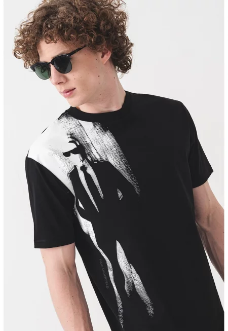 Мъжка тениска - 304613944 - Органичен памук - Черна
