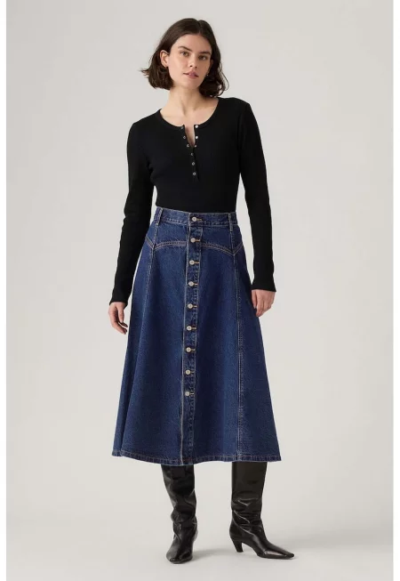 Къса пола от деним с копчета