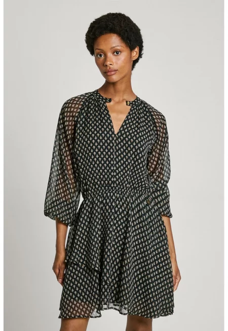 Къса разкроена рокля с принт