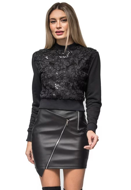 Суитшърт Lola с цип и дантела
