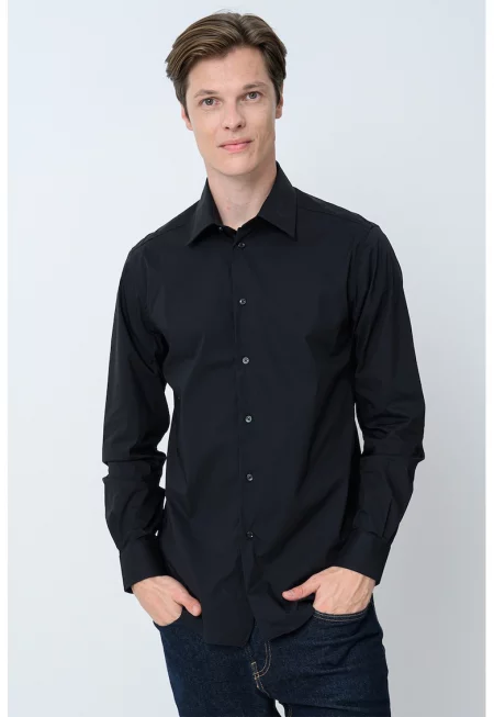 Мъжка риза - 304520884 - Памук - Черен