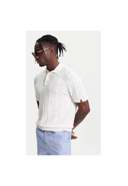 Мъжка поло тениска 115GK301G - Памук/Лен - Бежов