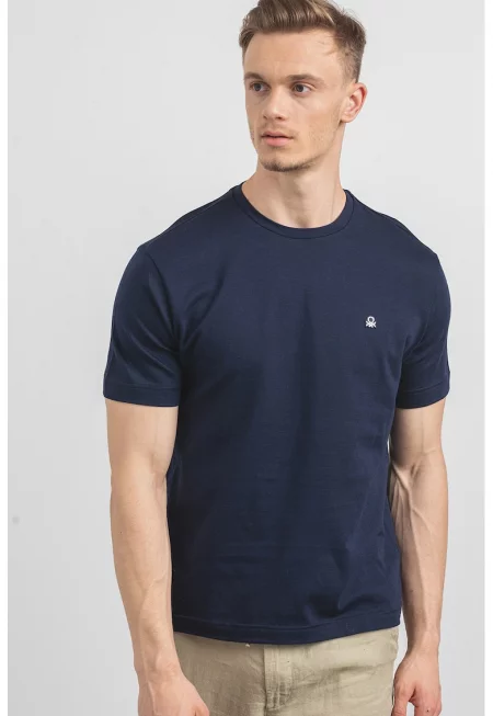 Памучна тениска с овално деколте и лого