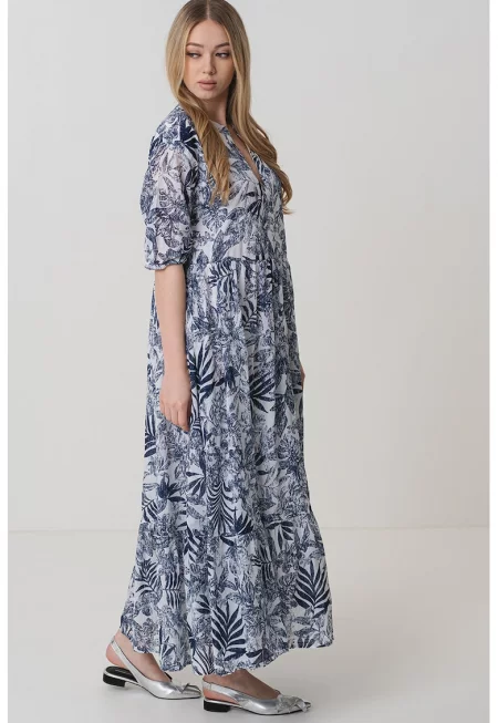 Рокля със странични отвори и флорален десен