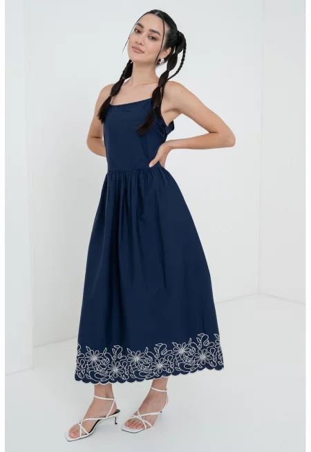 Памучна рокля с флорална бродерия