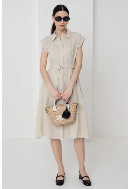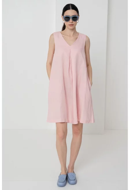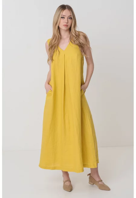 Ленена рокля с джобове встрани