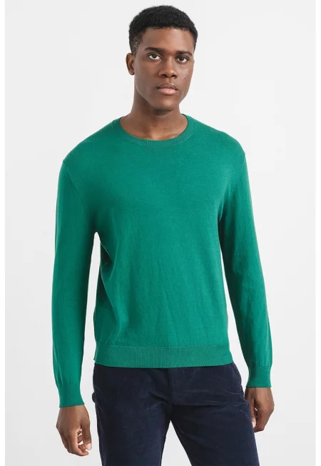 Фино плетен пуловер с овално деколте