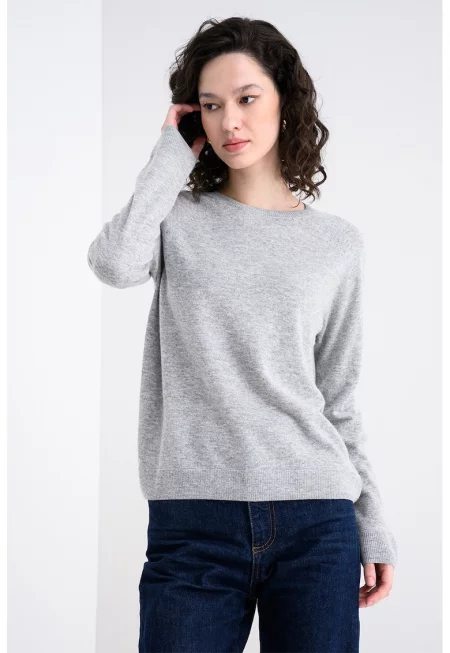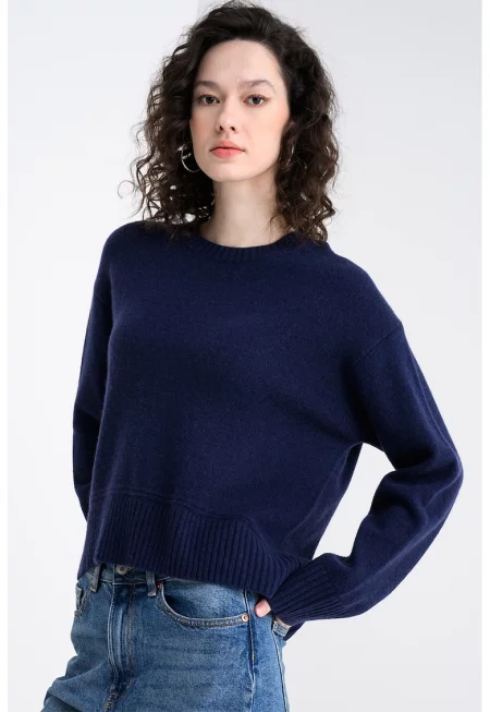 Пуловер с вълна с овално деколте