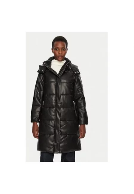 Дамско кожено палто - 304480461 - Екокожа - Черно - Черен