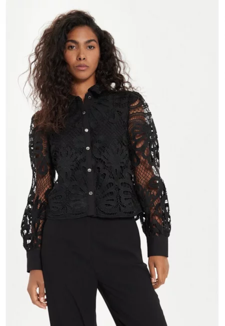Дамска риза - 304480560 - Полиестер - Черен - Черен