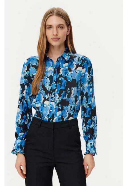 Дамска риза - 305252821 - Полиестер - Син - Син