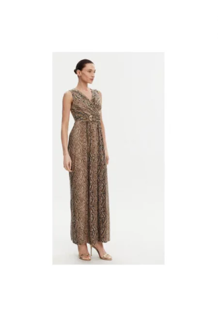 Дамска лятна рокля 251-RFAUVE - Полиестер/Еластан - Кафяв - Кафяв