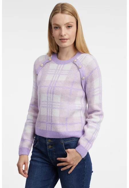 Кариран пуловер с овално деколте