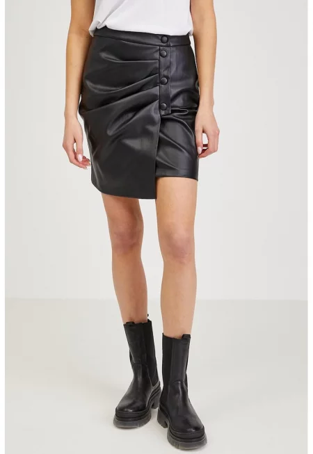 Къса набрана пола от еко кожа