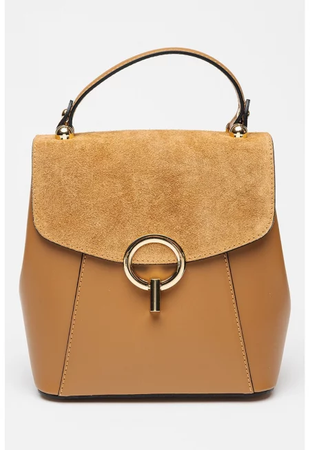 Кожена раница с велур