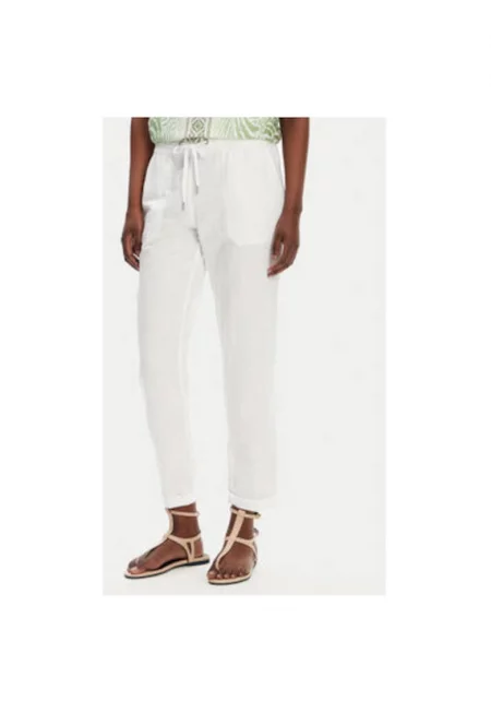 Дамски панталон 14002404 - Лен/Памук - Бял - Бял