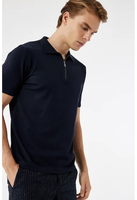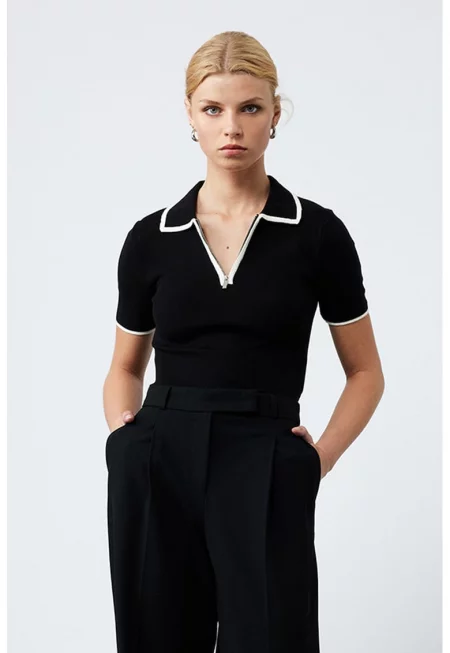 Тениска с яка и къс цип