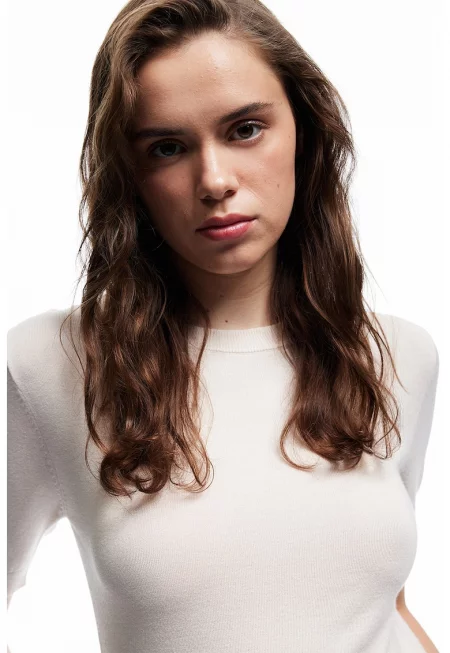 Фино плетен пуловер с къси ръкави