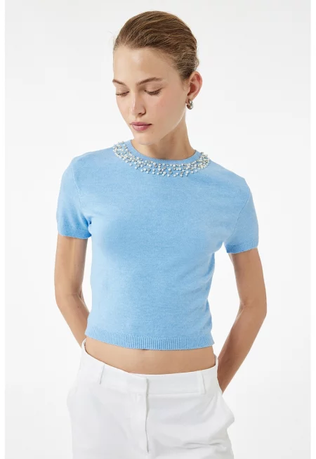 Къса тениска с декорации на деколтето
