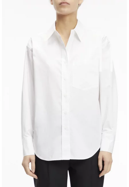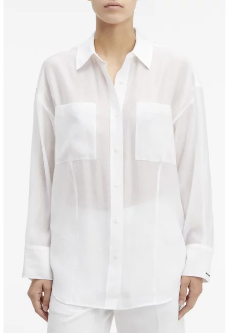Риза със свободна кройка и джоб - Бял